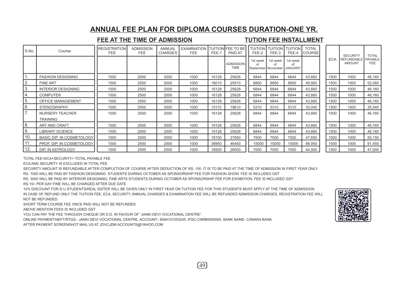 • Fee at The Time Of Admission